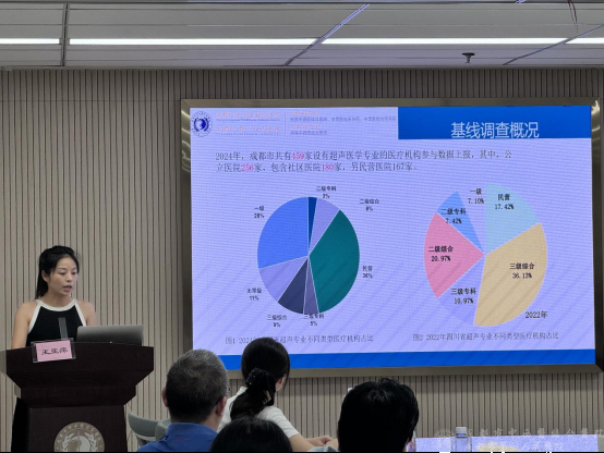 接着,质控中心秘书王亚萍汇报2024年度基线调查结果,本次基线调查涵盖成都各区县,内容全面,包括医疗机构基础信息及质控指标(住院超声检查48小时内完成率、超声危急值10分钟内通报完成率、门急诊超声报告阳性率、住院超声报告阳性率),此次基线调为中心后续工作做好铺垫作用。