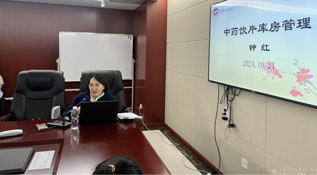 2024年10月24日,由成都市中药药事管理质量控制中心主办,成都市中药药事管理质控中心郫都区分中心承办的“成都市基层中药药事管理系列培训班(第十二期)”在郫都区中医医院顺利召开,中心主任李萍、郫都区中药质控分中心专家、郫都区各级各类医疗机构中药药事管理人员和药学部负责人参会。